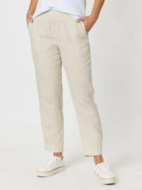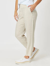 SARAH LINEN PANT JERSEY WAIST NATURAL
