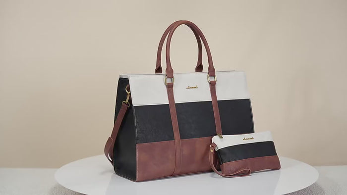 BAILEY LAPTOP BAG THREE TONE LINEN/BLACK/TAN