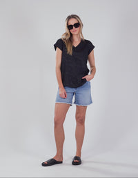 For those days when you just need to sparkle, there's the Bodie Tee. Featuring the comfort of Foxwood Tee's with a flattering curved hem and vee neckline, this metallic tee will make every outfit special.