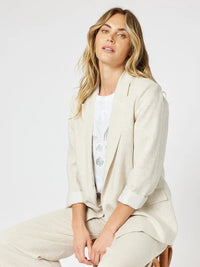 The Lino Blazer combines relaxed tailoring with thoughtful design details for a polished yet effortless look. It features a softly padded shoulder for subtle structure, a classic notched lapel, and a double-button front closure. The lightweight, breathable fabric makes it ideal for warm-weather layering, while flap pockets add a modern, refined touch. This blazer delivers a sleek silhouette that pairs beautifully with both matching Lino pieces and casual separates - perfect for travel, work, or everyday refinement.