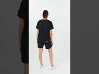 Our Unwinder Shorts have front inseam pockets, a comfortable encased elastic waist and a curved hem at the front and back, coming up to a point at the side of the leg.