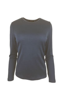 EBONY WOMEN'S 100% MERINO WOOL (210) LONG SLEEVE SATIN CREW TOP EBAS503IND.CREW