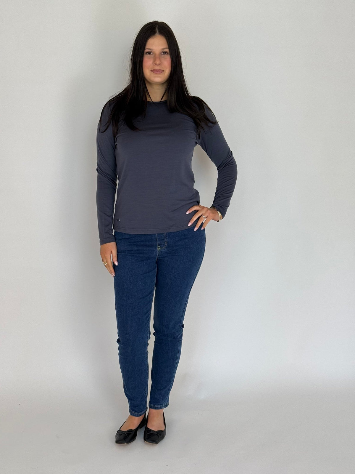 This Round Neck top by Ebony is an essential, 100% merino top featuring a crew neck and available in an array of gorgeous colours.