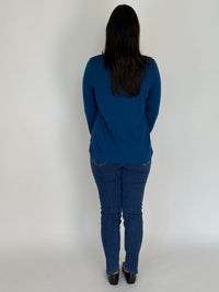 EBONY WOMENS 100% MERINO WOOL (210) CURVE HEM LONG SLEEVE JUMPER TWILIGHT EBAS583TWI.CURVEHEM