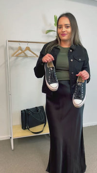 The Collared Denim Jacket by Threadz is your new wardrobe must have! It is the perfect trans-seasonal item to finish off any outfit. Feautures a soft stretch denim, classic denim jacket shape,ย gunmetal stud buttons sits just above hip on most andย easy to wear day to night.