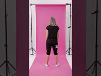 Our popular Apartment Pant in 3/4 length - in Black with a white X on the back. Made from Cotton/Elastane these pants are true to size for a relaxed fit with a drop crotch and they have pockets!
