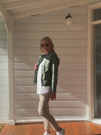 The Threadz Harper Military Denim Jacket is a super versatile jacket suitable all year round. It features flattering seam detailing, multiple pockets and triangular hemline at the back.